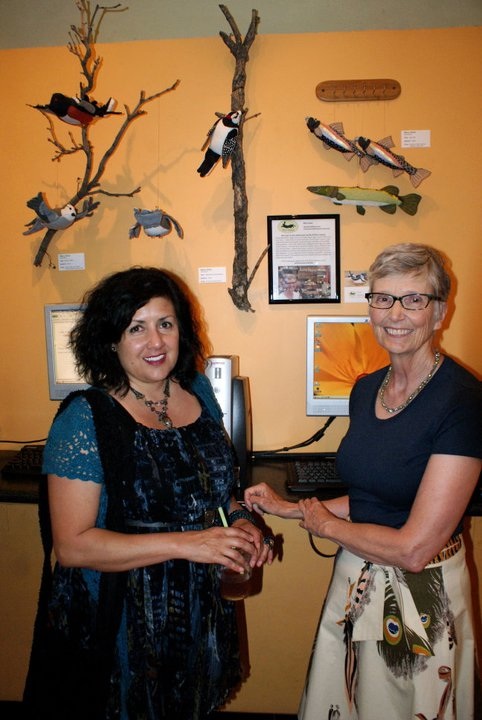 Geri Aranjo of La Samara Studios and Mary Katz of Flora Fauna at Tenn Street Coffee last Friday for the Lucky U Preview Party. Photo courtesy of Sharon Meriash.